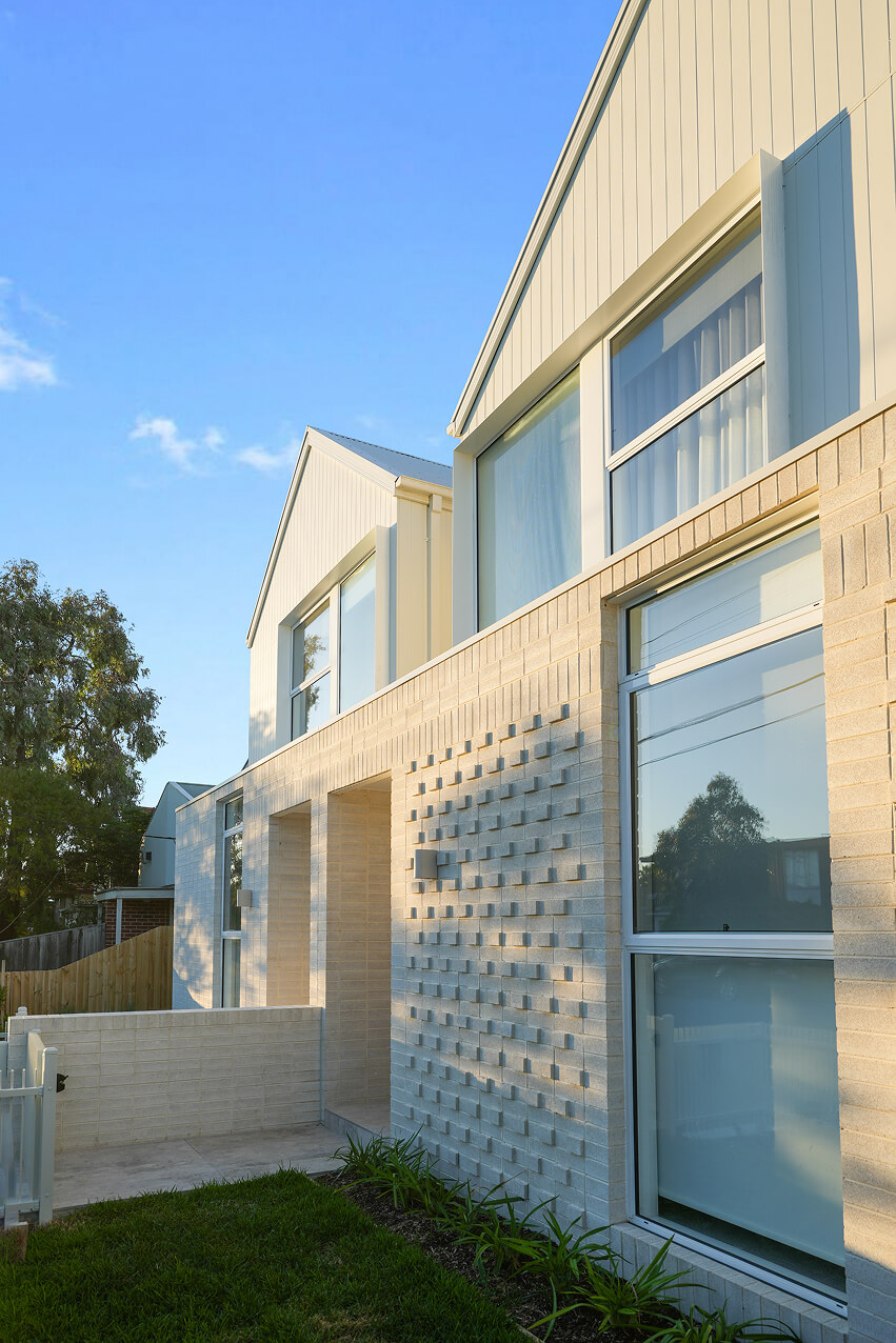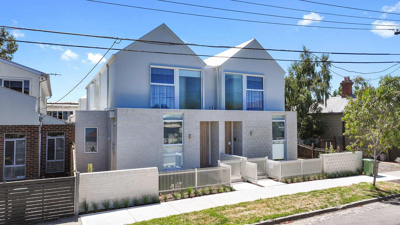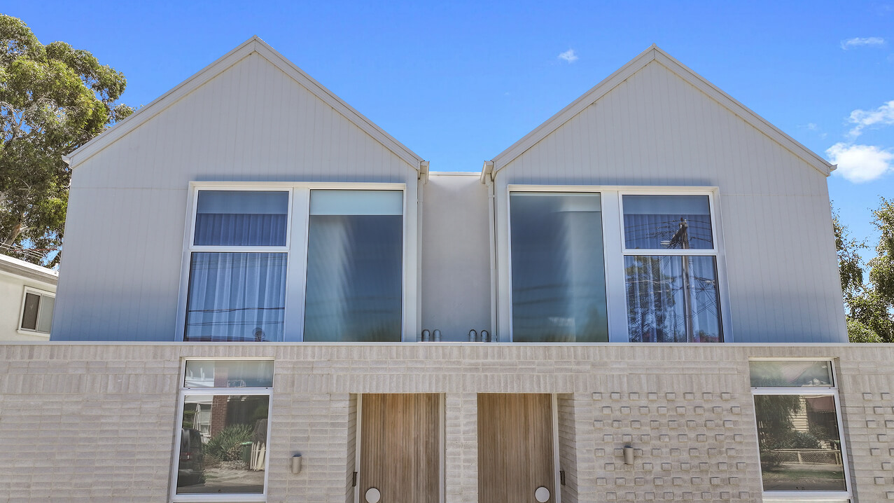 This dual-townhouse development in Northcote champions modern simplicity, elevated by a glazing package designed and installed by Somerton Windows.